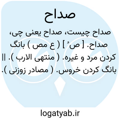 صداح. [ ص ُ ] ( ع مص ) بانگ کردن مرد و غیره. ( منتهی الارب ). || بانگ کردن خروس. ( مصادر زوزنی ). بانگ خروس. ( مهذب الاسماء ).