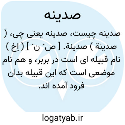 ( صدینة ) صدینة. [ ص َ ن َ ] ( اِخ ) نام قبیله ای است در بربر، و هم نام موضعی است که این قبیله بدان فرود آمده اند. رجوع به معجم البلدان ذیل کلمه «بربر» شود.