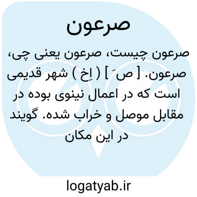 لغت نامه دهخدا صرعون. [ ص َ ] ( اِخ ) شهر قدیمی است که در اعمال نینوی بوده در مقابل موصل و خراب شده. گویند در این مکان گنجها وجود دارد و آورده اند. که جماعتی از گنجهای مزبور یافته بمقام بی نیازی رسیده اند.( معجم البلدان ). و رجوع به قاموس الاعلام ترکی شود.