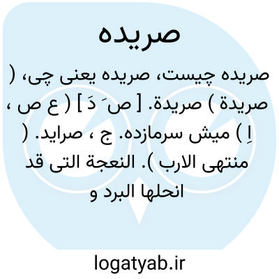 ( صریدة ) صریدة. [ ص َ دَ ] ( ع ص، اِ ) میش سرمازده. ج، صراید. ( منتهی الارب ). النعجة التی قد انحلها البرد و اضربها. ( اقرب الموارد ).