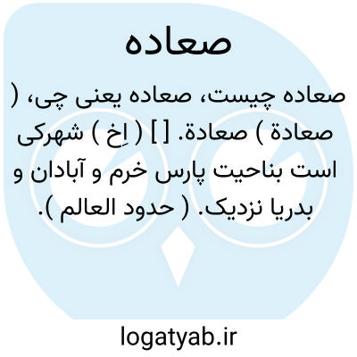 ( صعادة ) صعادة. [ ] ( اِخ ) شهرکی است بناحیت پارس خرم و آبادان و بدریا نزدیک. ( حدود العالم ).
