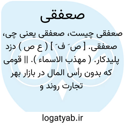 لغت نامه دهخدا صعفقی. [ ص َ ف َ ] ( ع ص ) دزد پلیدکار. ( مهذب الاسماء ). || قومی که بدون رأس المال در بازار بهر تجارت روند و هرگاه تجار چیزی را خرید کنند ایشان داخل و شریک آنهاشوند. ( منتهی الارب ). رجوع به صعافقة و صعافق شود.