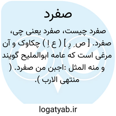 لغت نامه دهخدا صفرد. [ ص ِ رِ ] ( ع اِ ) چکاوک و آن مرغی است که عامه ابوالملیح گویند و منه المثل:اجبن من صفرد. ( منتهی الارب ). کبکنجیر. ج، صفارد. ( مهذب الاسماء ). زردک. ( زمخشری ). قبره. قنبره. کاکلی.