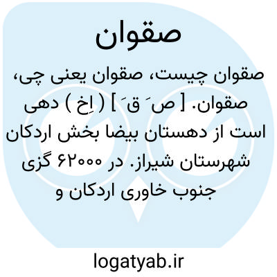 صقوان. [ ص َ ق َ ] ( اِخ ) دهی است از دهستان بیضا بخش اردکان شهرستان شیراز. در 62000 گزی جنوب خاوری اردکان و 1000گزی راه فرعی بیضا به زرقان. جلگه. معتدل و مالاریائی. سکنه 115 تن. آب از چشمه. محصول آنجا غلات، چغندر. شغل اهالی زراعت و صنایع دستی ایشان گلیم بافی است. راه مالرو دارد. ( فرهنگ جغرافیائی ایران ج 7 ).