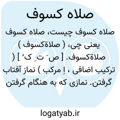 ( صلاةکسوف ) صلاةکسوف. [ ص َ ت ِ ک ُ ] ( ترکیب اضافی، اِ مرکب ) نماز آفتاب گرفتن. نمازی که به هنگام گرفتن آفتاب خوانند و به هنگام گرفتن ماه و آمدن زلزله و هر مخوف آسمانی نیز. در ترجمه نهایه آمده: فریضه واجب است و روا نبود ترکش کردن بر هیچ حالی و مستحب است که این نماز به جماعت بکنند و اگر تنها کنند روا بود و اگر کسی ترک این نماز کند بعمدا عند آنکه آفتاب بگرفته باشد یا ماهتاب و هر دو سوخته باشند بجملگی واجب باشد قضاء آن کردن با غسل وگر ترک این نماز بفراموشی کرده باشد و حال این باشد که ما وصفش بکردیم بر وی بود قضاء نماز کردن بی غسل،وگر بعضی از آفتاب یا ماهتاب سوخته باشد و نماز بعمد ترک کرده باشد بر وی باشد قضاء نماز کردن بی غسل وگر بسهو ترک کرده باشد بر وی چیزی نبود و وقت این نماز آن وقت بود که آفتاب بگیرد یا ماه تا آن وقت که ابتدا کند برگشودن و چون ابتدا کرد برگشودن، وقت رفت، وگر وقت کسوف وقت نماز فریضه بود باید که از نخست آن نماز فریضه بکند و بر اثر آن نماز کسوف بکند و اگر ابتدا به نماز کسوف کند و وقت فریضه درآید بر دو فریضه بکند، پس با سه نماز کسوف شود وگر وقت نماز شب بود از نخست نماز کسوف بکند و پس نماز شب و اگر نماز شب فایت شود قضایش بکند، پس از آن باکی نبود و این نماز ده رکعت است به چهار سجده و یک تشهد، پنج رکوع کند و در پنجم به سجود شود و پس برخیزد و پنج رکوع دیگر بکند و بعد هم به سجود شود و در رکعت اول الحمد بخواند و سورتی دیگر اگر خواهد و اگر خواهد بعضی سوره بخواند، روا بود و هرگه که خواهد که در رکعت دوم بقیه آن سوره بخواند، باید که سوره الحمد نخواند بقیه سوره بخواند و ابتدا ازآن جایگاهی که به وی رسیده بود بکند و اگر خواهد که سورتی دیگر خواند، الحمد بباید خواندن و پس سوره خواندن و حکم دیگر رکعتها همچنین است و در هر رکعت پیش از رکوع قنوت بکند و اگر اقتصار بر یک قنوت بکند دردهم رکعت نیز روا بود و هرگه که سر از رکوع بردارد،بگوید: اﷲ اکبر، الا در پنجم و دهم که آنجا سمع اﷲ لمن حمده بگوید و مستحب باشد که مقدار نمازش چندان بود که کسوف باشد و مقدار رکوع و سجود چون مقدار قرائت بود: و مستحب است که در نماز کسوف سورتهای دراز خواندن چون سورة الکهف و الانبیاء و هرگه که مردم از نماز کسوف پردازند و کسوف هنوز باز نشده باشد، مستحب است نماز با سر گرفتن وی را و اگر اقتصار بر تسبیح و تحمید بکند باکی نبود و باکی نبود که مردم نماز کسوف بر پشت چارپای بکند یا میرود و میکند و چون نزول و وقوف نتواند. ( ترجمه نهایه چ دانشگاه ج 1 صص 93-94 ).
