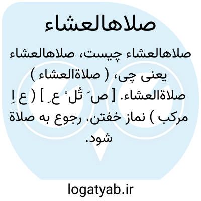 ( صلاةالعشاء ) صلاةالعشاء. [ ص َ تُل ْ ع ِ ] ( ع اِ مرکب ) نماز خفتن. رجوع به صلاة شود.