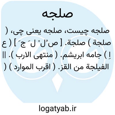 ( صلجة ) صلجة. [ ص ُل ْ ل َ ج َ ] ( ع اِ ) جامه ابریشم. ( منتهی الارب ). || الفیلجة من القز. ( اقرب الموارد ) ( قطر المحیط ). پیله ابریشم.