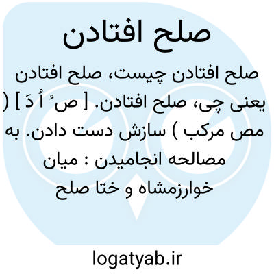 صلح افتادن. [ ص ُ اُ دَ ] ( مص مرکب ) سازش دست دادن. به مصالحه انجامیدن: میان خوارزمشاه و ختا صلح افتاد. ( گلستان ). رجوع به صلح شود.