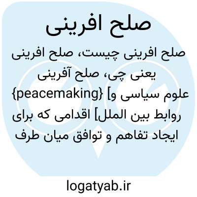 {peacemaking} [علوم سیاسی و روابط بین الملل] اقدامی که برای ایجاد تفاهم و توافق میان طرف های درگیر به شیوه ای آشتیجویانه انجام گیرد