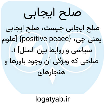 {positive peace} [علوم سیاسی و روابط بین الملل] 1. صلحی که ویژگی آن وجود باورها و هنجارهای آشتیجویانۀ اجتماعی و فرهنگی، و عدالت در همۀ عرصه ها و استفادۀ مردم سالارانه از قدرت و نبود خشونت میان دولت هاست 2. نبود جنگ همراه با رفع اختلاف میان دولت ها به شیوۀ سازنده
