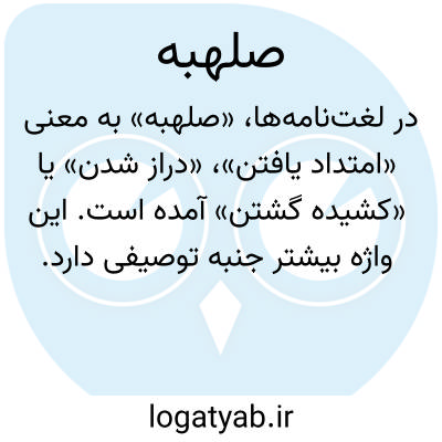 واژه صلهبه در زبان فارسی و عربی به معنای دراز شدن یا کشیده شدن است. این واژه از ریشه عربی گرفته شده و در متون کهن برای توصیف حالتی به کار میرفته که چیزی یا کسی به شکل دراز و کشیده قرار میگیرد. در لغتنامهها، «صلهبه» به معنی «امتداد یافتن»، «دراز شدن» یا «کشیده گشتن» آمده است. این واژه بیشتر جنبه توصیفی دارد و برای بیان شکل، قامت یا حالت جسمی چیزی مورد استفاده قرار میگرفته است.