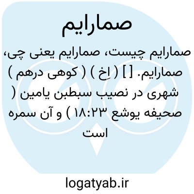 صمارایم. [ ] ( اِخ ) ( کوهی درهم ) شهری در نصیب سبطبن یامین ( صحیفه یوشع 18:23 ) و آن سمره است که در عربه به مسافت چهار میل به شمال اریحا واقع است و اسم مسطور درلغت عبرانی تثنیه می باشد و در آنجا دو خرابه هست که هر یک از آنها را سمره گویند. ( قاموس کتاب مقدس ).