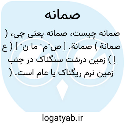 ( صمانة ) صمانة. [ ص َم ْ ما ن َ ] ( ع اِ ) زمین درشت سنگناک در جنب زمین نرم ریگناک یا عام است. ( منتهی الارب ).