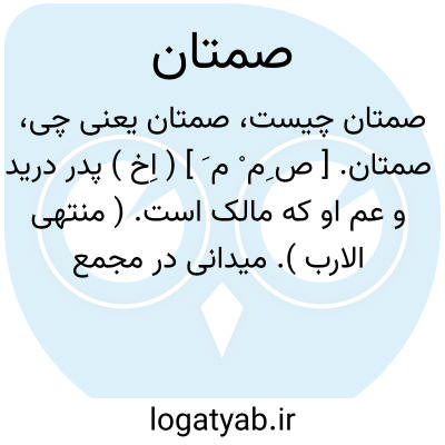 صمتان. [ ص ِم ْ م َ ] ( اِخ ) پدر درید و عم او که مالک است. ( منتهی الارب ). میدانی در مجمع الامثال آرد: گویند الصمتان، صمه جشمی پدر درید و جعدبن شماخ است و این بدان ماند که گویند العمران و القمران و دواسم را مقارن آورده اند بدان جهت که صمة جعد را در اینجا بکشت و پس از زمانی صمه هم بدانجا بقتل رسید و بین بنی مالک و یربوع جنگ درپیوست و آن را یوم الصمتین گفتند. ( مجمع الامثال ). رجوع به معجم البلدان شود. صمتان. [ ص ِم ْ م َ ] ( اِخ ) نام جائی است و صمه جشمی در آن مکان به قتل رسیده است. ( معجم البلدان ). رجوع به کلمه فوق شود.