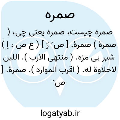 ( صمرة ) صمرة. [ ص َ رَ ] ( ع ص، اِ ) شیر بی مزه. ( منتهی الارب ). اللبن لاحلاوة له. ( اقرب الموارد ).