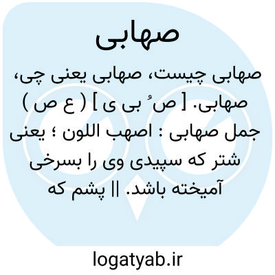 صهابی. [ ص ُ بی ی ] ( ع ص ) جمل صهابی: اصهب اللون؛ یعنی شتر که سپیدی وی را بسرخی آمیخته باشد. || پشم که سپیدی آنرا سرخی آمیخته باشد. || چیز بسیار که کم نشده باشد.الوافر الذی لم ینقص. ( اقرب الموارد ). || مردی که او را دفتر حساب نبوده باشد. ( منتهی الارب ). الرجل لادیوان له. ( اقرب الموارد ). || چهارپائی که صدقه آن نگرفته باشند. ( منتهی الارب ). النعم لم تأخذ صدقته. ( اقرب الموارد ). || سخت از هر چیزی. ( منتهی الارب ). الشدید. ( اقرب الموارد ).