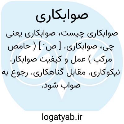 لغت نامه دهخدا صوابکاری. [ ص َ ] ( حامص مرکب ) عمل و کیفیت صوابکار. نیکوکاری. مقابل گناهکاری. رجوع به صواب شود.