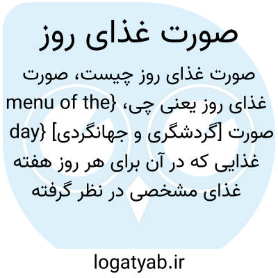 {menu of the day} [گردشگری و جهانگردی] صورت غذایی که در آن برای هر روز هفته غذای مشخصی در نظر گرفته می شود
