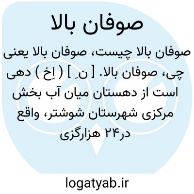 صوفان بالا. [ ن ِ ] ( اِخ ) دهی است از دهستان میان آب بخش مرکزی شهرستان شوشتر، واقع در24 هزارگزی جنوب خاوری شوشتر و 8 هزارگزی خاوری راه تابستانی شوشتر به بندقیر. کنار باختری رود گرگر. دارای 120 تن سکنه. آب آن از کارون. محصول آنجا برنج،صیفی و کنجد. شغل اهالی زراعت است. راه آن در تابستان اتومبیل رو است. ( از فرهنگ جغرافیائی ایران ج 6 ).