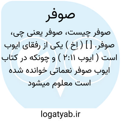 صوفر. [ ] ( اِخ ) یکی از رفقای ایوب است ( ایوب 2:11 ) و چونکه در کتاب ایوب صوفر نعماتی خوانده شده است معلوم میشود که از نعمه بوده است ( صحیفه یوشع 15:41 ) که یکی از شهرهای یهود است. ( قاموس کتاب مقدس ).