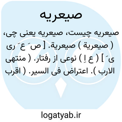 ( صیعریة ) صیعریة. [ ص َ ع َ ری ی َ ] ( ع اِ ) نوعی از رفتار. ( منتهی الارب ). اعتراض فی السیر. ( اقرب الموارد ). || داغی است در گردن ماده شتر خاصة یا عام است. ( منتهی الارب ).