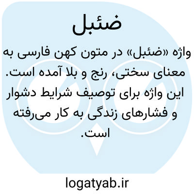 واژه «ضئبل» در متون کهن فارسی به معنای سختی، رنج و بلا آمده است. این واژه برای توصیف شرایط دشوار و فشارهای زندگی به کار می‌رفته و اغلب در متون ادبی و دینی به منظور بیان مصائب انسان‌ها یا آزمون‌های الهی استفاده می‌شده است. در این معنا، این کلمه نشان‌دهنده وضعیتی است که تحمل آن دشوار و نیازمند صبر و بردباری است.