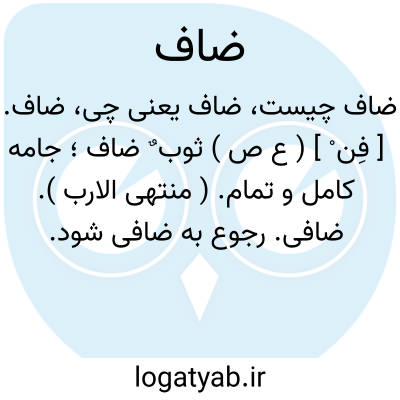 ضاف. [ فِن ْ ] ( ع ص ) ثوب ٌ ضاف؛ جامه کامل و تمام. ( منتهی الارب ). ضافی. رجوع به ضافی شود.