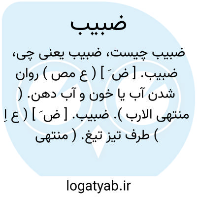 ضبیب. [ ض َ ] ( ع مص ) روان شدن آب یا خون و آب دهن. ( منتهی الارب ).