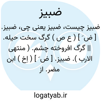 لغت نامه دهخدا ضبیز. [ ض َ ] ( ع ص ) گرگ سخت حیله. || گرگ افروخته چشم. ( منتهی الارب ).ضبیز. [ ض َ ] ( اِخ ) ابن مضر. از قبیله غوث است و ایشان بمادر خویش بجیلة دختر صعب بن سعد العشیرة منسوبند. ( عقد الفرید ج 3 ص 338 ).