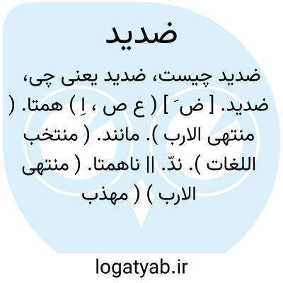 ضدید. [ ض َ ] ( ع ص، اِ ) همتا. ( منتهی الارب ). مانند. ( منتخب اللغات ). ندّ. || ناهمتا. ( منتهی الارب ) ( مهذب الاسماء ). مخالف. ( منتخب اللغات ). از لغات اضداد است.
