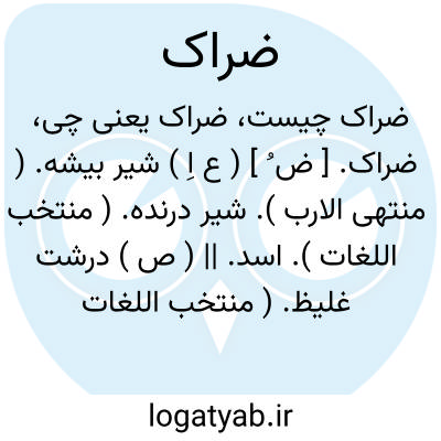 ضراک. [ ض ُ ] ( ع اِ ) شیر بیشه. ( منتهی الارب ). شیر درنده. ( منتخب اللغات ). اسد. || ( ص ) درشت غلیظ. ( منتخب اللغات ). آنکه پی گلوی او درشت و سخت باشد. ( منتهی الارب ).