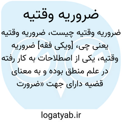 [ویکی فقه] ضروریه وقتیه، یکی از اصطلاحات به کار رفته در علم منطق بوده و به معنای قضیه دارای جهت «ضرورت وقتی» است.