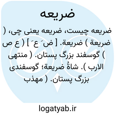 ( ضریعة ) ضریعة. [ ض َ ع َ ] ( ع ص ) گوسفند بزرگ پستان. ( منتهی الارب ). شاةُ ضریعة؛ گوسفندی بزرگ پستان. ( مهذب الاسماء ). || زن بزرگ پستان. ( منتهی الارب ).