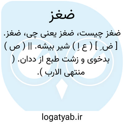 ضغز. [ ض ِ ] ( ع اِ ) شیر بیشه. || ( ص ) بدخوی و زشت طبع از ددان. ( منتهی الارب ).