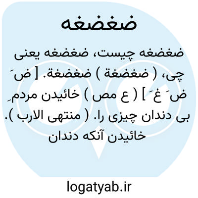 ( ضغضغة ) ضغضغة. [ ض َ ض َ غ َ ] ( ع مص ) خائیدن مردم ِ بی دندان چیزی را. ( منتهی الارب ). خائیدن آنکه دندان ندارد. || خوب نخائیدن گوشت را. ( منتهی الارب ). || سخن آمیخته و ناپیدا گفتن. || حکایت آواز خوردن گرگ گوشت را. || زیادت در سخن و کثرت آن. ( منتهی الارب ).