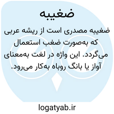 ضَغیبة مصدری است از ریشهٔ عربی که به‌صورت ضَغَبَ استعمال می‌گردد. این واژه در لغت به‌معنای آواز یا بانگِ روباه به‌کار می‌رود و در منابع کهن زبان عربی، از جمله کتاب تاج‌المصادر اثر ابوالقاسم زمخشری، به این معنا تصریح شده است. در ساختار صرفی زبان عربی، این واژه به‌عنوان یک مصدر ثلاثی مجرد شناخته می‌شود که بیانگر حالت یا عمل مشخصی از سوی روباه است. کاربرد این قبیل واژه‌ها عمدتاً در متون ادبی، اشعار کهن و نیز متون جانورشناسی قدیم مشاهده می‌شود و نشان‌دهندهٔ دقت و ظرافت زبان عربی در توصیف پدیده‌های طبیعی و حیوانی است. با توجه به اینکه این واژه امروزه کمتر در گفتار روزمره به‌کار می‌رود، شناخت آن بیشتر برای اهل تحقیق، ادب‌دوستان و کسانی که با متون کلاسیک عربی سروکار دارند، مفید خواهد بود. یادآوری می‌شود که تلفظ صحیح آن با فتحه روی حرف «ض» و سکون «غ» است و به‌صورت ضَغْیَبة یا ضَغَبَة نیز در برخی منابع آمده است.