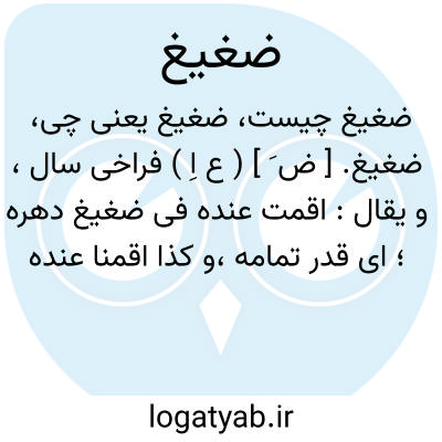 ضغیغ. [ ض َ ] ( ع اِ ) فراخی سال، و یقال: اقمت عنده فی ضغیغ دهره؛ ای قدر تمامه،و کذا اقمنا عنده فی ضغیغ؛ ای خصب. ( منتهی الارب ).
