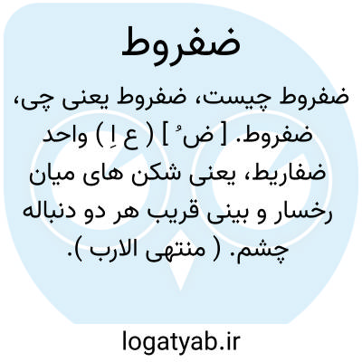 ضفروط. [ ض ُ ] ( ع اِ ) واحد ضفاریط، یعنی شکن های میان رخسار و بینی قریب هر دو دنباله چشم. ( منتهی الارب ).