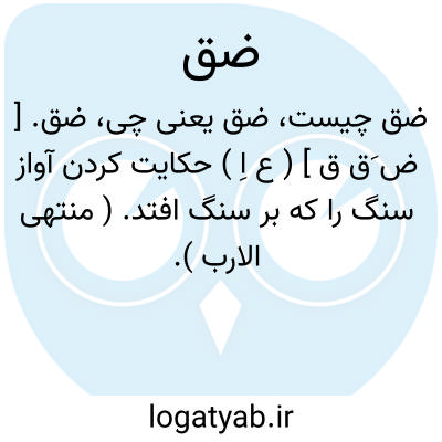ضق. [ ض َق ق ] ( ع اِ ) حکایت کردن آواز سنگ را که بر سنگ افتد. ( منتهی الارب ).