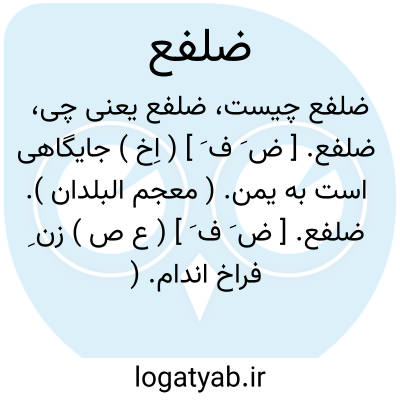 لغت نامه دهخدا ضلفع. [ ض َ ف َ ] ( اِخ ) جایگاهی است به یمن. ( معجم البلدان ).ضلفع. [ ض َ ف َ ] ( ع ص ) زن ِ فراخ اندام. ( منتهی الارب ).
