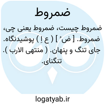 ضمروط. [ ض ُ ] ( ع اِ ) پوشیدنگاه. جای تنگ و پنهان. ( منتهی الارب ). تنگنای.