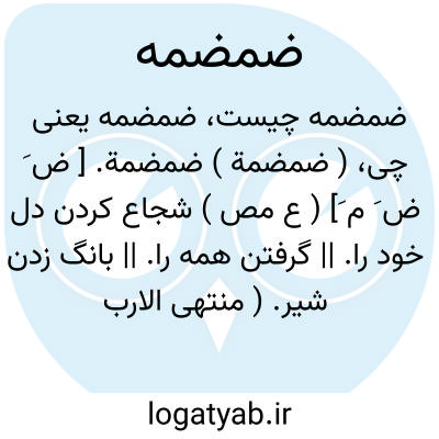 ( ضمضمة ) ضمضمة. [ ض َ ض َ م َ] ( ع مص ) شجاع کردن دل خود را. || گرفتن همه را. || بانگ زدن شیر. ( منتهی الارب ).