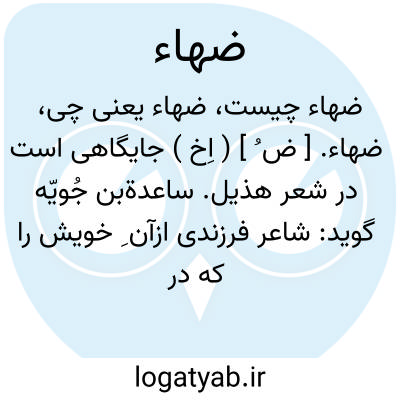 ضهاء. [ ض ُ ] ( اِخ ) جایگاهی است در شعر هذیل. ساعدةبن جُویّه گوید: شاعر فرزندی ازآن ِ خویش را که در این سرزمین هلاک شده بدین شعر مرثیت گفته و شعر اینست: