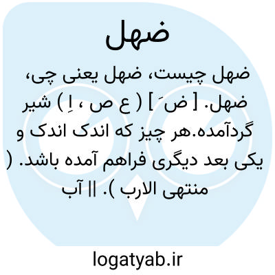 ضهل. [ ض َ ] ( ع ص، اِ ) شیر گردآمده.هر چیز که اندک اندک و یکی بعد دیگری فراهم آمده باشد. ( منتهی الارب ). || آب اندک. ( منتهی الارب ) ( منتخب اللغات ). آب اندک در جوی. ( مهذب الاسماء ).