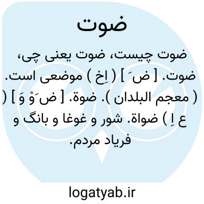 ضوة. [ ض َوْ وَ ] ( ع اِ ) ضواة. شور و غوغا و بانگ و فریاد مردم. گویند: سمعت ضوة القوم؛ ای جلبتهم. ( منتهی الارب ). آواز. ( مهذب الاسماء ).