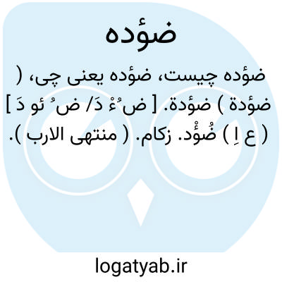 ( ضؤدة ) ضؤدة. [ ض ُءْ دَ/ ض ُ ئو دَ ] ( ع اِ ) ضُؤْد. زکام. ( منتهی الارب ).