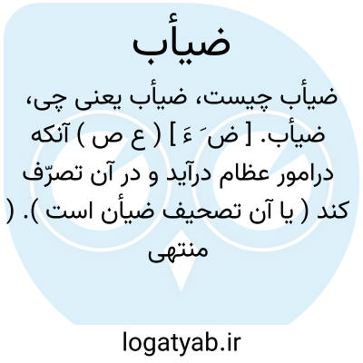 ضیأب. [ ض َ ءَ ] ( ع ص ) آنکه درامور عظام درآید و در آن تصرّف کند ( یا آن تصحیف ضیأن است ). ( منتهی الارب ). صاحب تاج العروس گوید: ضیأب، الذی یقتحم فی الامور. لغةٌ فی الضیأن لا تصحیف.