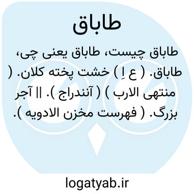 [ معر. ] (اِ. ) = طابق: ۱ - ظرف آهنی مدور که بر آن نان پزند، تابه. ۲ - خشت پختة بزرگ، آجر بزرگ.