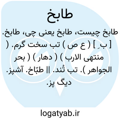 طابخ. [ ب ِ ] ( ع ص ) تب سخت گرم. ( منتهی الارب ) ( دهار ) ( بحر الجواهر ). تب تُند. || طبّاخ. آشپز. دیگ پز. خوالیگر. مطبخی.