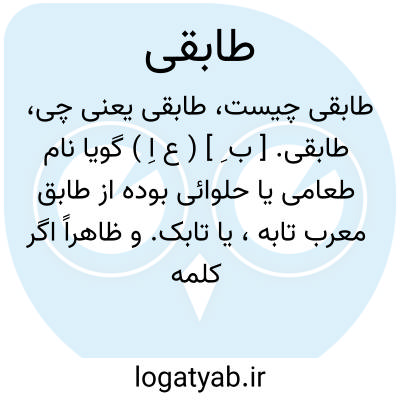 طابقی. [ ب ِ ] ( ع اِ ) گویا نام طعامی یا حلوائی بوده از طابق معرب تابه، یا تابک. و ظاهراً اگر کلمه طائفی حلوای طائف نباشد در شعر ذیل طابقی است: